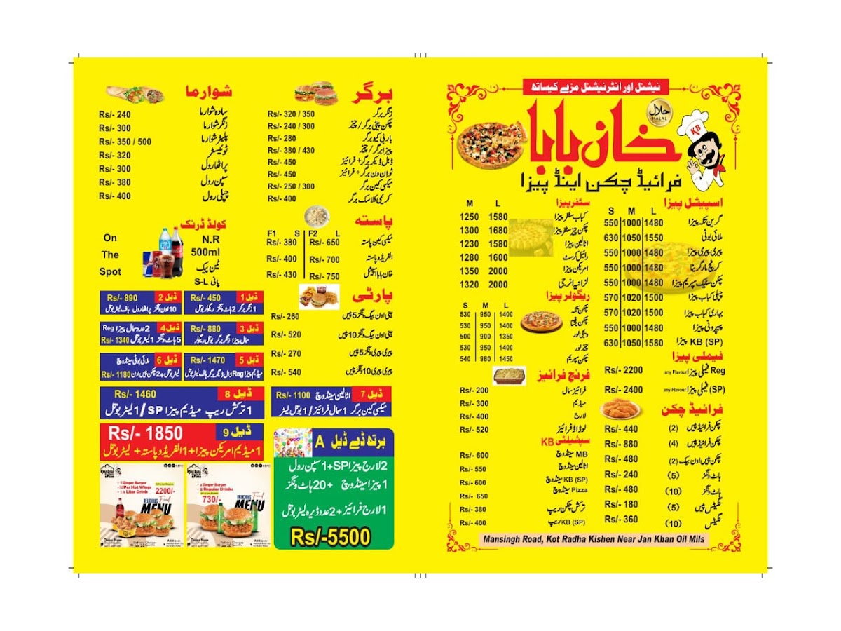The menu at Khan Baba Fri-Chicks & Pizza keeps things straightforward and crowd-pleasing, focusing on hearty portions and familiar favorites that work well for both solo meals and sharing. If you’re craving something classic and filling, the Pizza Large stands out as the go-to option-ideal for groups or anyone who wants a generous, satisfying slice experience. For a more complete, protein-forward choice, the Chicken Platter feels like the centerpiece of the menu, offering a substantial meal that’s meant to leave you full rather than just “snacked.” And if you want something more convenient but still packed with flavor, the Turkish Grill Wrap adds a nice change of pace, delivering a handheld option that fits well for a quick bite without sacrificing the restaurant’s bold, savory style. Overall, the menu’s highlights show a clear focus on big, satisfying staples that match the casual, comfort-food vibe the restaurant aims for.